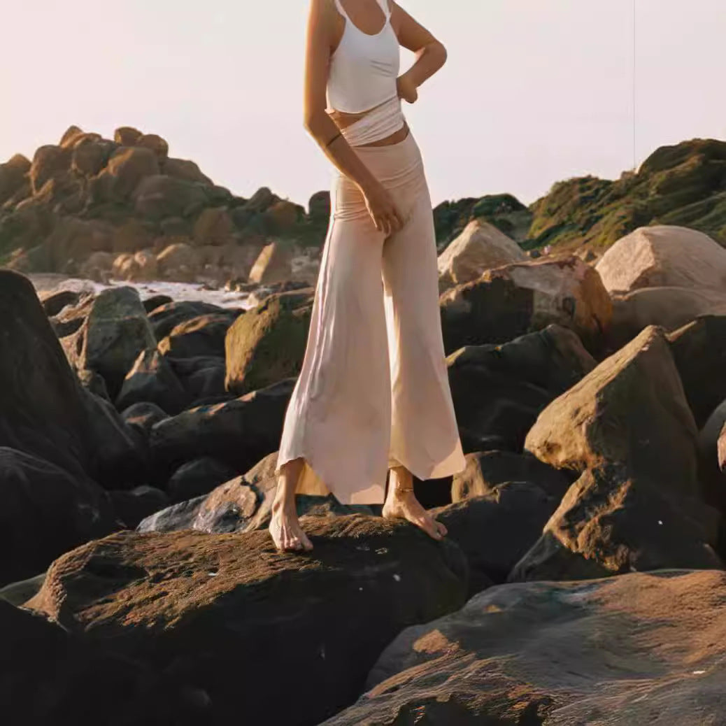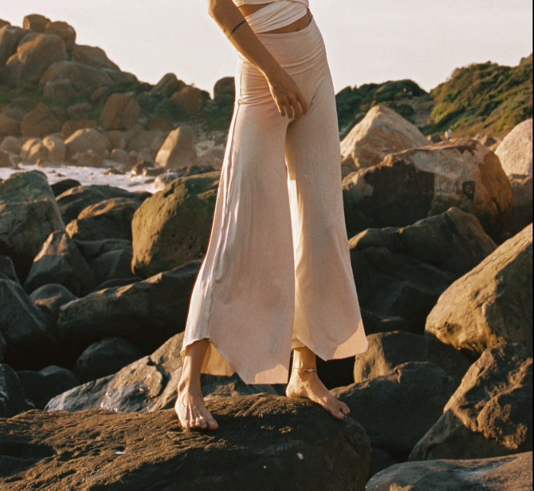 High Waist Irregular Casual Pants Yoga Cropped Pants